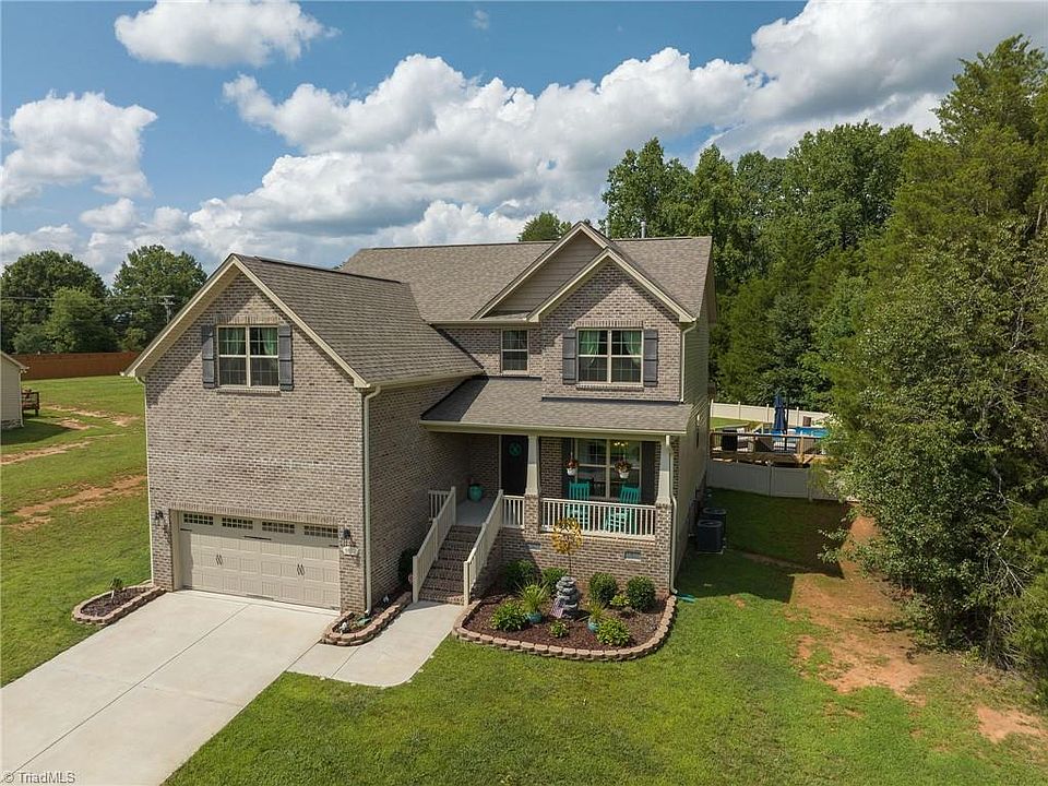 MOTIVATED SELLERS!! So many features!! This 4/3.1 original owner home - less than 3 yrs young - awaits! Engineered wood flooring in main living areas. Tiled flrs in Bath & Laundry rms. TWO Primary BR Suites (1 each flr) with lots of closet spaces & upgraded, double vanity baths with soaker tubs and separate showers. 2nd flr has 2 additional BRs & the 3rd full bath, along with a large Bonus rm. SS appliances in lovely walk-thru kitchen with granite connects to coffered ceiling dining room, breakfast nook & overlooks great rm with beautiful stone-faced gas FP. Natural Gas Range, FP, HWH. Large fenced back yard w/new expanded decking leads to your pool. Motorized/crank awning provides additional shade area. Separate walkway takes you to the paver Firepit area & large storage shed. Make this lovely Kernersville home yours today!! See Agent Only Remarks & attachments for more info.