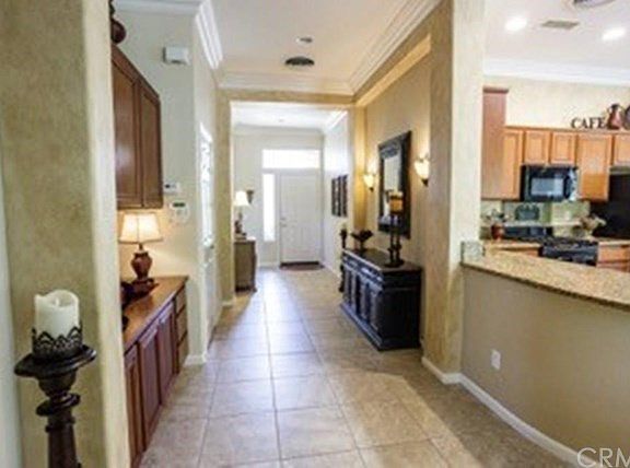 This open Tenaja floor plan is an entertainer's delight. It has 2 bedrooms, master retreat, 2 full baths and a den. Upgrades galore including beautiful 10" crown moulding, leaded glass entry, upgraded cabinets with pullout shelves, GE Profile convection stove, newer Kitchen Aid dishwasher, granite countertops, kitchen skylight, custom fireplace and entertainment center, surround sound in family room with all sound equipment and TV included, 2 whole house fans and 5 ceiling fans. The office/den has custom bookcases, window seat and large built in desk affording plenty of storage. The master bedroom has added square footage used as a retreat. The tranquil and very private back yard has an extra large patio, retractable awning, many fruit trees and a raised up vegetable garden for easy access. The many amenities at Trilogy include indoor and outdoor pools and spa, state-of -the-art fitness center with indoor walking track, tennis courts, clubhouse and much more. Trilogy is a 55 plus community situated near the famous Glen Ivy Spa, which is in the process expanding to become a world class destination resort for health and fitness.