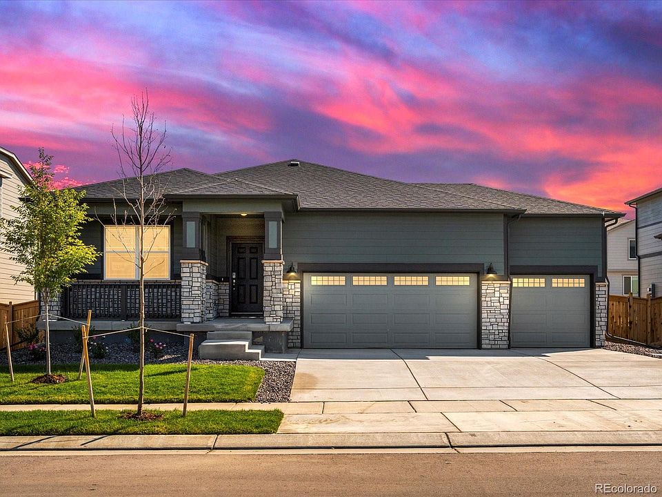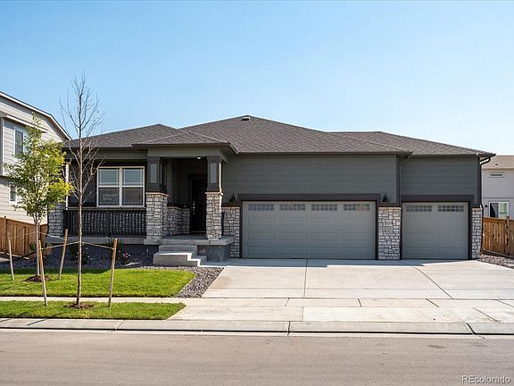 Brand new, energy-efficient home ready NOW! This charming ranch-style home offers a spacious and inviting atmosphere. With three cozy bedrooms and a Flex room you can use as an office or 2nd living area, it provides ample space for comfortable living. The highlight of this home is its expansive unfinished basement with 998 square feet, making it an ideal space for recreation or additional living quarters plus a three-car garage. Step outside to a covered back patio, perfect for enjoying the outdoors in any weather. This home combines functionality with a warm and welcoming design, making it an ideal choice for those seeking comfort and convenience. Centrally located, Buffalo Highlands is a beautiful community in Commerce City. This new phase of single-family homes features five open-concept floorplans to choose from in our LiVE.NOW packages. Nearby the Rocky Mountain Arsenal, with extensive trails and just a short commute to Downtown Denver and DIA. Each of our homes is built with innovative, energy-efficient features designed to help you enjoy more savings, better health, real comfort and peace of mind.
