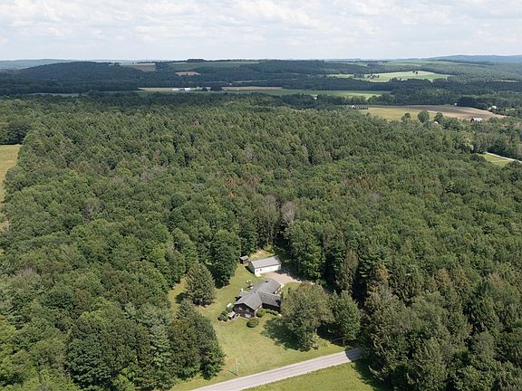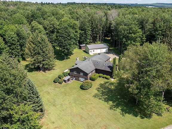 Rare Opportunity! With a gorgeous and very private setting, this 3-bedroom, 1-bath ranch sits on 28.8 wooded acres on a no-through-traffic road. The spacious eat-in kitchen, generous bedrooms, and large great room with cathedral ceilings make it perfect for entertaining. An additional smaller living room features a post-and-beam design and a stone hearth with a gas insert fireplace.