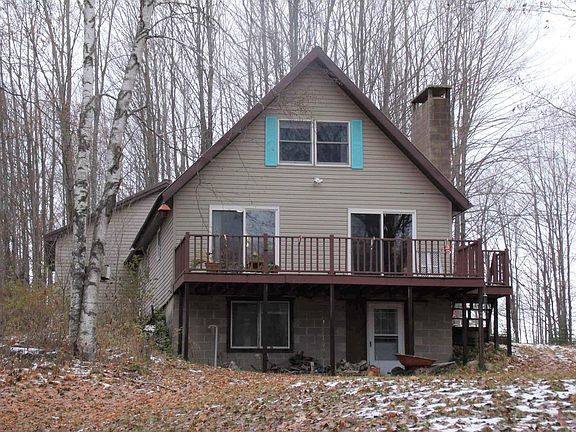 What a great setting on this well maintained Three Bedroom Chalet Home Sitting On a nicely wooded twenty acre parcel over looking a pond. Walkout, large two car garage, home comes furnished, new furnace and washer and dryer. Storage shed.
