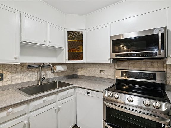 Great location and updated- move right in to this well maintained corner unit with mountain views! This condo has 2 bedrooms, 1 bathroom, 1 car detached garage, and is conveniently located on the same floor as laundry room and bonus storage room. Many features include newer vinyl Coretec flooring, baseboards, and neutral paint throughout. Open kitchen with white cabinets, quartz slab countertops, tile floor, double sided pantry, and newer appliances including Bosch dishwasher and garbage disposal, as well as stainless double oven, microwave, and refrigerator. Bathroom with updated fixtures, floor tile and tiled tub surround. Spacious bedrooms with lots of closet space. 1 wall a/c included. Lanai features a Champion vinyl slider door with vinyl enclosed glass windows for use during all seasons. **Windsor Gardens is Colorado's Largest Age 55+ Active Adult Living Condo Community. Did you know? Monthly HOA Dues include annual property taxes! And heat, water, sewer, trash, round-the-clock patrolling community responders, full time onsite association management, grounds/building maintenance, and activities department. Enjoy clubhouse amenities such as fitness center, indoor/outdoor pools, hot tub, sauna, billiards, library, craft rooms for ceramics, sewing, woodworking, and 9 hole par 3 golf course and onsite restaurant both open to the public. Stay engaged with a wide array of activities, clubs, and events scheduled every month. Additional features include garden plot program, private walking trail and nature preserve, and RV/Boat storage. The Highline Canal runs full length along south side of the complex. RTD Bus Stops located thru-out the community. FHA/VA approved. Close to restaurants, stores, shopping…Minutes to Lowry, Hwy 225, Cherry Creek…Easy access to DIA and downtown. Come see for yourself what Windsor Gardens has to offer.©2021**