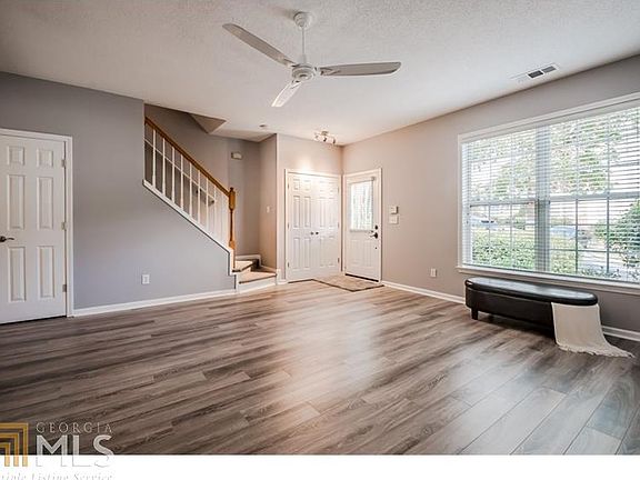 AWESOME, renovated move-in ready townhome in Johns Creek...for under $200k! NEW high-end laminate flooring throughout main & upper levels; new upgraded carpet on stairs only. NEW kitchen incl granite counters, white shaker-style cabinets, sink & faucet, appliances. Plentiful counters, pantry. Main floor w/ dining area & huge great rm w/ wood-burning fireplace. Large master suite w/ granite counters/dual sinks in master, new faucets & rain showerhead, walk-in closet. NEW light fixtures/fans throughout. NEW interior paint. Outdoor storage closet; 2 assigned parking