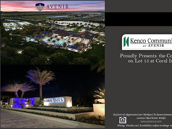 NEW CONSTRUCTION WITH IMMEDIATE OCCUPANCY! PALM BEACH GARDENS' NEW MASTER-PLANNED COMMUNITY! HIGHLY DESIRABLE 1-STORY COZUMEL WITH 3-CAR SPLIT GARAGE FEATURES DRAMATIC 12-FOOT CEILINGS, GRAND 10' SLIDING GLASS DOORS, LOW-E IMPACT GLASS, FREE-STANDING TUB IN MASTER BATH, FRONT LOAD WASHER/DRYER, LOADS OF UPGRADED FINISHES INCLUDING GE MONOGRAM(r) STAINLESS APPLIANCES + SO MUCH MORE IN THIS GORGEOUS ESTATE HOME. ATTENTION TO DETAIL BY ACCLAIMED PALM BEACH COUNTY PRIVATE LUXURY HOME BUILDER WITH 30-YEAR HISTORY! GORGEOUS POOL|SPA WITH MARBLE DECK AREA HIGHLIGHTED BY SERENE, LUSHLY LANDSCAPED BACKDROP! MODERN LUXURY IN THIS HOME AND SURROUNDING COMMUNITY WITH RESORT STYLE CLUBHOUSE ALREADY DONE RIGHT NEXT DOOR. GET IN EARLY AND BE PART OF AVENIR'S HISTORY!!