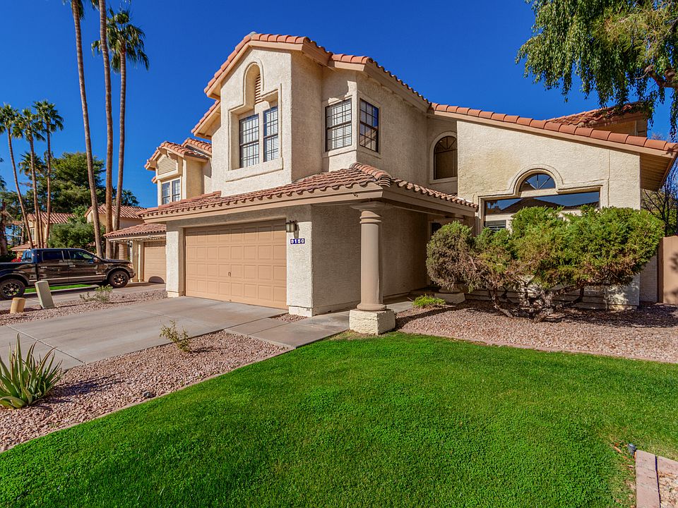 Large 4 bedrooms in excellent condition. Newer paint , new carpet just installed, new range/oven & microwave. granite countertop. Travertine floors downstairs. Fireplace in family room. Shutters & blinds throughout. Mature tress in backyard. Cul de sac lot Access to community pool. Great location, close to 101, shopping etc.. Front yard maintained by HOA Tenant to have carpets professionally cleaned prior to move out