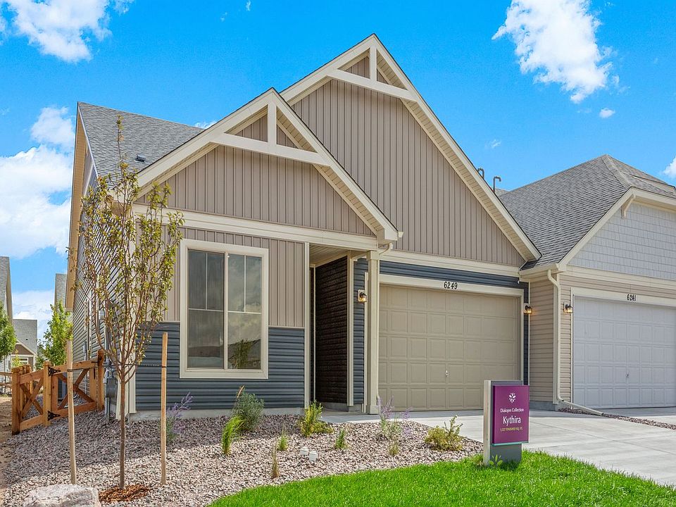 Welcome home to his spacious ranch plan located in The Retreat, a private 55+ community in Banning Lewis Ranch.. This home features 1527 square feet of open living space. The foyer opens up to the kitchen complete with an eat-in island that is perfect for quiet nights in or large gatherings, walk in pantry, and ample cabinetry space for all your cooking needs. The kitchen flows right into the dining and great room where you will be welcomed with large windows that allow in an abundance of light and access to the covered patio. A flex space is located in the middle of the floor plan ensuring the room is as versatile as your needs for the room change. The large primary suite features an adjoining bathroom complete with a walk-in closet, double vanity, and water closet. The laundry facilities are located near the garage entry. A secondary bedroom and full bathroom are situated near the front of the home for guest and family convenience.