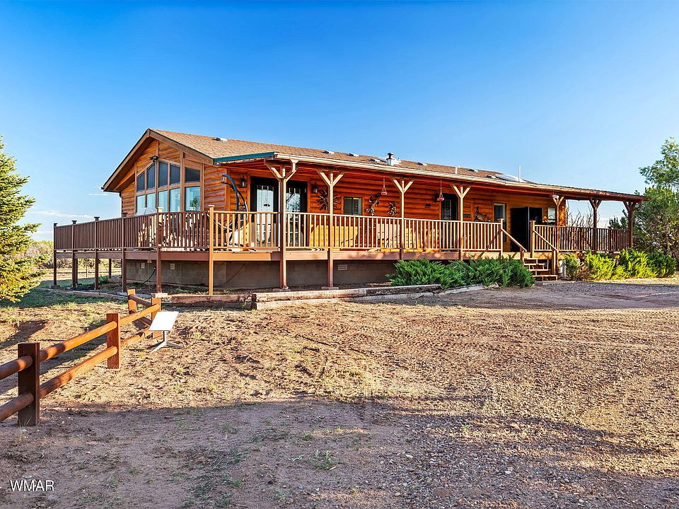 Freshly painted, a massive deck surrounds three sides of this log-sided treasure. With half undercover, plenty of shade is provided all times of the day.