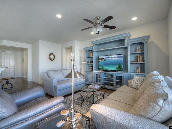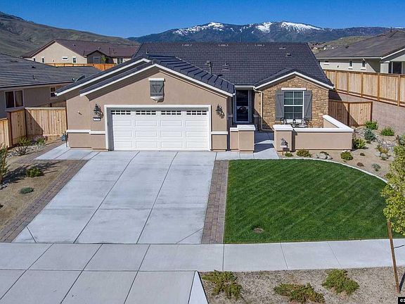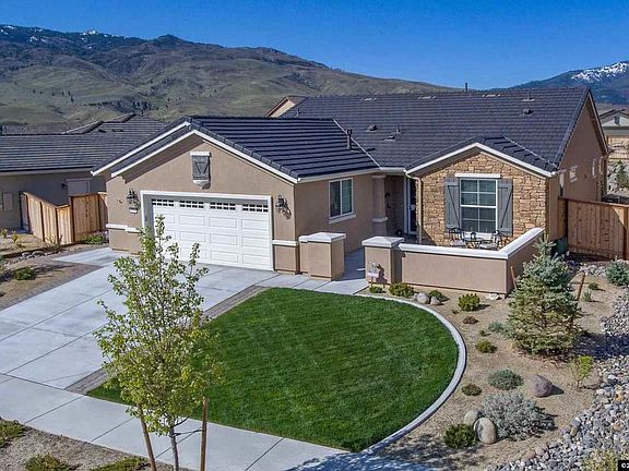 Welcome home to this gorgeous Northstar model in Del Webb Sierra Canyon, Reno's premier 55+ active adult community & lifestyle. Nearly new with upgrades galore, including crisp white cabinetry, laminate flooring, stainless steel appliances, ceiling fans throughout, even a barn door that adds accent & function in the master suite. The private backyard oasis beckons you with mountain views, while the front courtyard is ideal to sip morning coffee or entertain neighbors with a glass of wine. Start living!