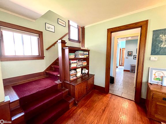 Elegant 2 story Craftsman house with modern comfort and contemporary improvements! Park in the cobblestone paver driveway, walk down the cobblestone path, in through the bright front porch and into the spacious and preserved living room. Walk past the built-in cabinets, and into the formal dining room. Just a couple of more steps into the completely redesigned custom kitchen addition with half-bath and direct access to the professionally installed tumbled stone patio. Up stairs to three generously sized bedrooms and a stunning chic full bathroom. Walk up attic and full basement for storage. 1 car attached garage. Alley access. Located in the North Grinnell Historical District. One block from Merrill Park. 100 feet from Grinnell College. This is it. Take a look. Make the call.