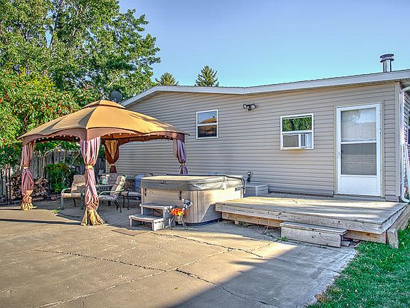 NO LOT RENT! When you buy this home you also own the lot. 3 stall detached garage completely finished with plenty of lighting and room for storage. The back yard is completely fenced which provides privacy for the large concrete patio with the hot tub and gazebo. As you enter this home you have the choice of going to the family room to get some quiet time or walk through the french doors to enter the heart of the home. You will immediately notice the large living room which carries you into the dining room. From here you will notice the tile back splash in the kitchen. 3 bedrooms and 2 bathrooms make up the rest of the space in this home. Call a Realtor to schedule a showing!