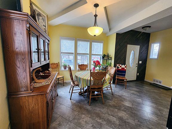 Don’t miss your chance to own this one-of-a-kind cottage-style home that perfectly blends timeless charm with modern convenience! As you enter, you are welcomed by beautifully detailed coffered ceilings that add elegance and character throughout the home. The main level features an open-concept kitchen and dining area featuring granite countertops, a gas stove, and ample space for entertaining. The inviting living room includes a converted electric fireplace and large picture windows that fill the space with natural light. Also on the main floor, you'll find two comfortable bedrooms and a full updated bathroom. Upstairs, the private primary suite awaits, complete with a full bathroom featuring a tiled shower and oversized closet plus an additional bedroom. The lower level is ideal for relaxation and gatherings, offering a cozy family room with a second electric fireplace, two additional bedrooms—one of which is cleverly concealed behind a Murphy-style bookcase—and another full bathroom complete with a double jetted tub and stand-alone shower. A spacious laundry room and plenty of storage. Outside is the fully double-fenced yard, perfect for privacy and pets. The deck and patio area offer great spaces for outdoor entertaining, and there’s plenty of room to add gardens or personalize the landscape to your liking. Enjoy the benefits of established apple, plum, and pear trees already planted for you. The triple garage is fully insulated, heated, and sheet rocked, with  220-volt and an RV plug-in—plus ample space for RV parking. The freshly painted exterior enhances the home's curb appeal. Just across the alley, you’ll find Riverside Park, complete with basketball and pickleball courts, play structures, and a picnic area—ideal for active lifestyles and fun. Contact your favorite Realtor to schedule a showing today—this truly unique and lovingly updated home won’t last long!  Additional updates include new flooring upstairs and downstairs,  Water heater  2024 (50 gal large enough to fill jetted tub)  Kitchen and bathrooms.