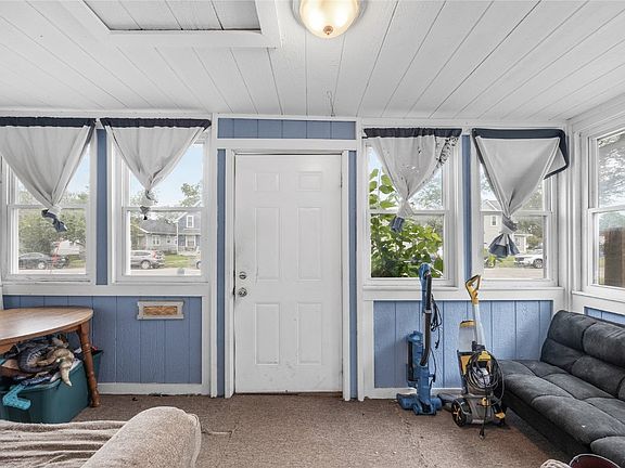 Do you dream of having a large kitchen? Here it is! How about a fenced in yard and a garage? Got those too! This is a great starter home, could be a flip home or could also just be a great family home! Lots of options! The primary bedroom is on the main floor and was actually two bedrooms at one point in time, so with some work it could go back to that. The laundry is on the main floor and there is a great enclosed front porch. The upstairs is used as two bedrooms (one is non-conforming) and also has a living room or play room area. New roof and siding as well. Solid home that has been in the family for three generations! Not in the flood plain!