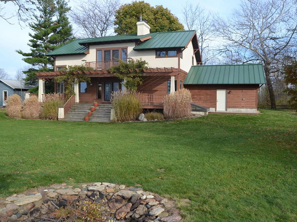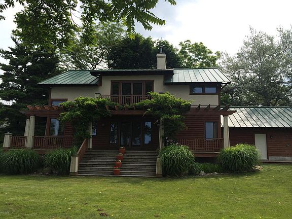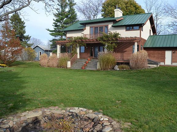 Quiet peaceful setting just north of South Haven. Scenic 4 acre parcel on Lake Michigan with over 400 feet of Lake Frontage features a newer 2100 square foot Bungalow/Prairie style home with another 1200 square feet that could be finished in the daylight lower level. An additional 2 bedroom, 1 bath heated cottage is to the south and 2 sleeping cabins with baseboard heat to the north provide a total of 7 sleeping areas. Beautifully finished main home with maple floors, woodwork and stairs; cherry cabinetry and cherry trim accents throughout. Two fireplaces of stone and ceramic. Stable bluff with professionally engineered wood and steel fan-folded retaining wall, adjustable wooden stairs to the beach where the bluff is protected by Holmberg stabilizers.
