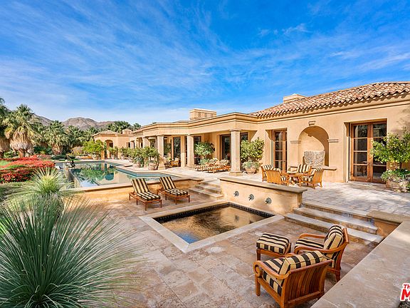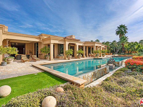 RESORT STYLE OASIS! 1 of the finest luxury estates in guard gated BIGHORN Golf Club, boasting 2 guest homes, on 1.67 acres, centered on 2 of the most desirable southern exposure home sites w/unobstructed views of the Canyons' 4th green & lake, & the mountains beyond, this grand property is unrivaled. 2 sets of private gates reveal one of architect Bob Ray Offenshauser's best collaborations of Mediterranean sophistication & casual desert ease. Surrounded by gardens & water, every space in this home is a magical experience. Fully equipped Chef's kitchen, offering a refrigerated walk-in pantry as well as a dry pantry. Open to the family room, w/access to outdoor living through pocketing walls of glass. The master retreat is complete w/office, dual bathrooms & 3 closets, antique tub & outdoor shower. Guest suites well appointed w/ private baths & closets. Wine room, theater & bar lounge. Gardens, Greenhouse & outdoor kitchen w/ pizza oven. New $70M clubhouse, 2 world-renowned golf courses!