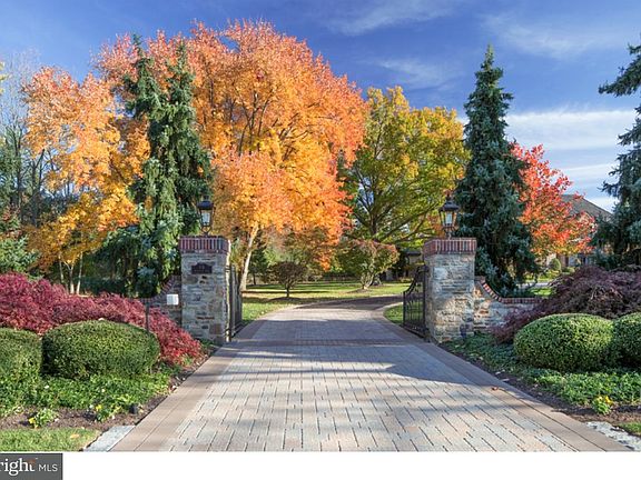 There is nothing this architectural landmark lacks. From mechanicals to aesthetic charm, this property represents the truly high water mark for design and finish and high quality living. Drive by once and you will always remember this striking home's design. The sweeping drive leads to a fine masonry masterpiece. European influenced exterior design includes pebble and dash, stone, brick and solid timber features. Nestled among the most prestigious homes built over the last 20 years, this house is remarkable for its individual style and grace. The site allows a southern exposure to the rear "living" side of the home infusing the house interior and private outside living with sunlight all day long. A separate outbuilding allows for a sequestered parking area and a private, one bedroom apartment over the spare garage. The compound of buildings also includes a sumptuous pool cottage and gardener's workhouse invoking the estate living of a bygone era. The landscape is perfectly maintained. A 62' lap pool with waterfall spa and lovely terraces embrace the private side of the property. The house plan layout is the most luxurious set of living spaces you can imagine. From a first floor master bedroom / bathroom suite including a full workout gym and private library, to the high open main family/great room, exquisite private dining room and kitchen open to breakfast table and four season sun room, the feel is one of opulence. Thick wide doors and detailed doorway openings integrated with rich mill work forming shaped ceilings with multiple steps of crown trim. Indirect ceiling lighting highlight real gold leaf and faux finishes lending a sense of excitement to every room. The heavy timbers introduced on the exterior are found again in soaring timbered trusses in the vaulted and balcony overlooks inside. Artisanship in the wood finishes from mortise and tenon ceiling beams to rich kitchen cabinets and abundant mill work built-ins abound. The Mechanicals include full radiant floor heat augmenting the duel boiler fan-coil ambient air heating and cooling. The electronics bristle providing the hi-tech ease of sophisticated living. Endless recessed lighting, a full house sound system, security system with cameras, centralized lighting controls with command station. From a moisture proof basement design to high quality Pella windows, hand split cedar shingles and terne metal roofing with copper spouting, there is nothing this house requires for First Class living!!!