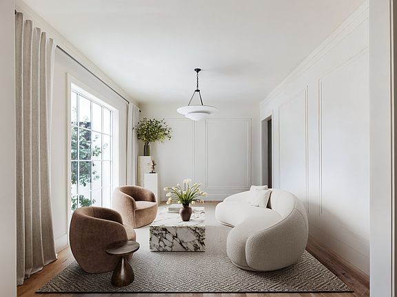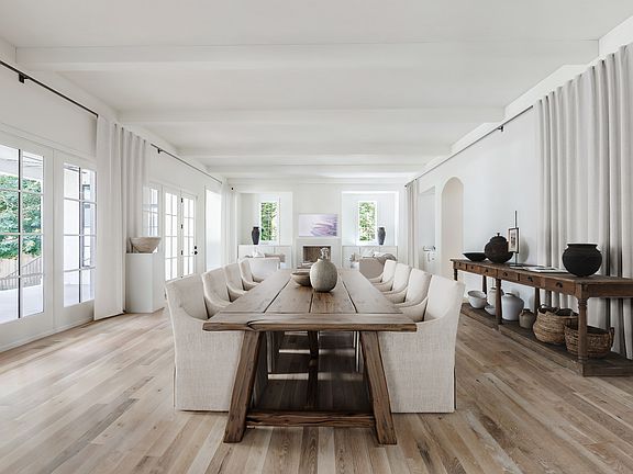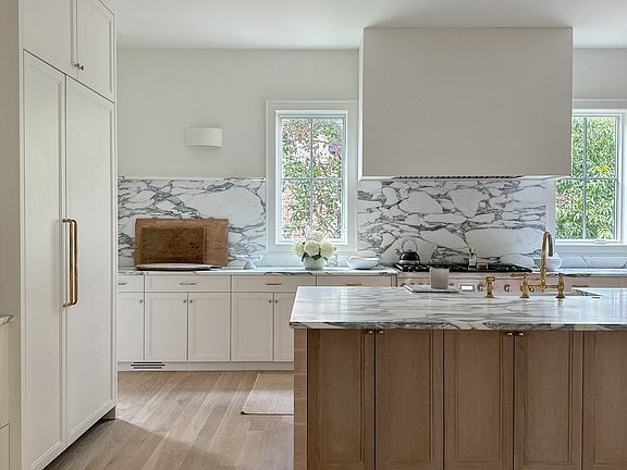 The main level features custom white oak floors, soaring ceilings, and a sun-drenched, open-concept layout that seamlessly connects the chef’s kitchen, scullery, custom bar, informal dining, and living room - all framed by custom marble details and timeless finishes. A flexible formal dining room adds versatility, while a cozy breakfast or reading room wrapped in windows offers a peaceful retreat among the trees.