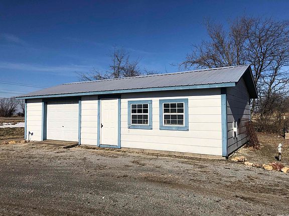 Well built home sitting on 0.40 Ac, corner lot. 2 bed, 1 bath, open living room & kitchen. Has HAVC and gas wall heater for backup.(also window air unit).With covered front carport and cover back patio. Circle drive to the back where a 20x36 shop with electric and wood stove heat. Also, good size animal kennel. This is an estate.