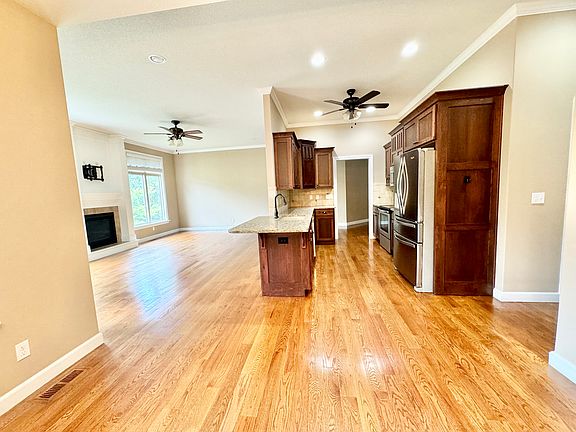 Available now! Looking for a renter to occupy as soon as possible. Beautiful luxury rental on a charming street just one block from Langston Hughes Elementary. Around the corner from Clinton Lake, Rock Chalk Park, and the Lawrence Loop nature trails for biking, running, and walking. Fresh paint throughout, premium finishes, ample storage space, raised deck, walk out ground level patio, wet bar for entertaining in the basement, three car garage... What more could you need? (Pets welcome for $100/mo increase in rent per month per pet.)