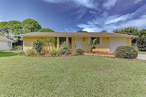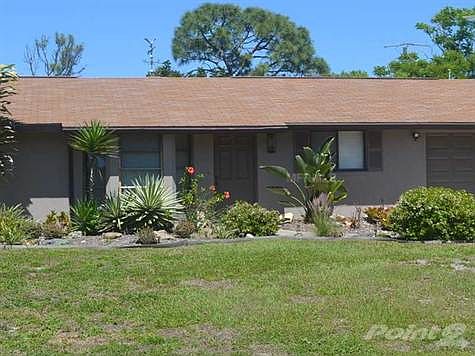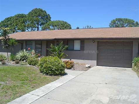 Florida style home in South Venice features two split bedrooms, two baths, one car garage, and a pool. Tiled throughout for easy maintenance, beautiful vaulted ceilings with exposed wood beams and extra built-ins give this home a lot of character. Walking onto the concrete deck, you can relax in shade under the gazebo or take a private dip in the pool with fence surrounding. South Venice has an optional association which includes ferry rides to a private beach.