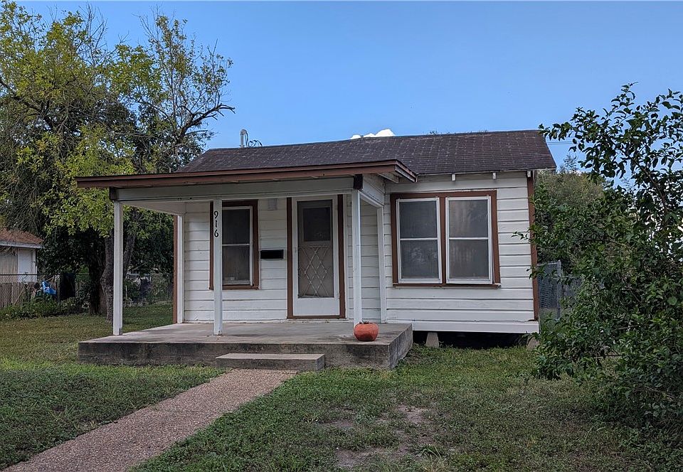 Welcome to this charming 2 bedroom, 1 bath cottage in Kingsville, just minutes from Texas A&M University-Kingsville and Naval Air Station Kingsville. Priced at only $45k, this cozy 644 sq. ft. home sits on a large lot with mature trees, a chain-link fence, and a welcoming southern-style front porch. Inside, you’ll find fresh interior paint, new vinyl flooring in the living room, new carpet in the primary bedroom, and an updated bathroom. The home also features all new electric throughout including the panel and wiring! While the home still needs a little love, it’s full of character and offers great potential as a starter home or investment property. One last bonus is that there is a nice sized shed in the backyard for all of your tools and yard equipment!
