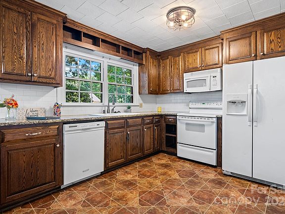Welcome to this charming ranch-style home in a prime location in Maiden! The spacious kitchen boasts custom cabinets, a large island, and granite countertops, perfect for cooking and entertaining. Enjoy the inviting living room flooded with natural light and featuring a cozy fireplace for chilly evenings. Original hardwood floors throughout most of the house add character and warmth. The extensive primary bedroom offers a convenient walk-in closet, while the spacious primary bathroom provides comfort. In addition to the three bedrooms, a flexible room can serve as a fourth bedroom, home office, playroom, or formal dining room, with charming glass doors opening to the lush backyard. Speaking of the yard, the picket fence and beautiful trees create a serene outdoor space. Need storage? You're covered with a detached one-car garage and an additional storage building. This home offers ample space and comfort, making it a perfect fit for its next owners!