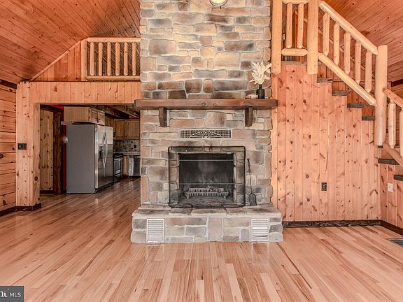 Enjoy the serenity, peace, and seclusion of cabin living nestled on 11.91 acres in Bald Eagle School District. This one-of-a-kind home boasts an impressive floor-to-ceiling stone fireplace, hardwood floors, vaulted ceilings, and striking views of nature from every room. The eat-in kitchen delivers stainless steel appliances, ample cabinet storage, tile + stone backsplash, and easy access to the private deck overlooking the wooded mountainside. This A-frame home features two sizeable bedrooms on the main floor with a notable full bathroom and tiled tub surround. The living room is the focal point of this stunning property delivering a woodburning fireplace, ample natural light, and a warm ambiance for those chilly nights as we transition into spring. The loft provides privacy and wooded views for that 3rd bedroom. This could also be used as a quaint hobby room! Retreat to the family room with a cozy wood stove, two glass French doors overlooking the front yard, and a full bathroom with a tiled walk-in shower. The unfinished portion of the lower level can be utilized for extra storage, workshop, or a home gym. New septic system installed in 2022! This home is located 6 miles to PA State Game Lands, Black Moshannon State Park, and is less than 20 minutes to State College, 15 minutes to Philipsburg, and 20 minutes to Tyrone.