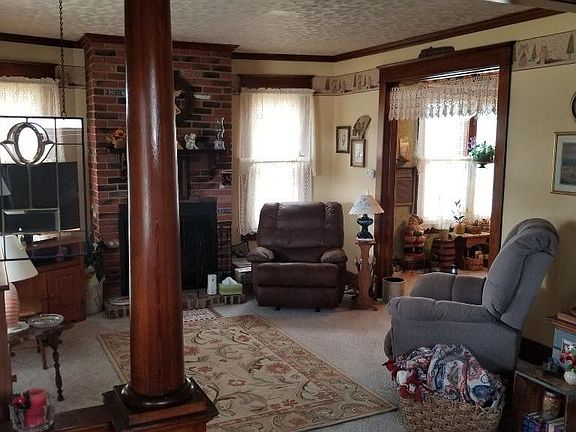 DOUBLE LOT IN town, this ALL BRICK family home has so much character/charm Natural woodwork/trim through out. Spacious dining room, living room with fireplace, nice sized bedrooms, Home has been well maintained. There is a poured concrete drive way with a 24x30 slab with footings ready for a new garage, 10x14 shed stays and a 6x6 shed as well. extra insulation has been blown in the attic, full basement is perfect for storage. Great location and neighborhood close to schools, doctors, shopping, and more! Updated roof, eaves, gutters and chimney.