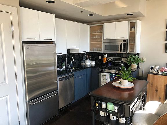 Contemporary 1 bed/1 bath loft at Mather Studios in amazing Penn Quarter location. This open floor plan with wall to wall windows offers some of the most unique views of downtown architecture. Interior features include exposed ducts, floor to ceiling exposed brick wall, and stained concrete floors to give this unit the ultimate city feel. Black granite counters and blue and white cabinetry w/ large island make this open kitchen a great place to entertain. The views carry into the he master bedroom and a spacious walk-in closet with industrial sliding barn door. This unit is spacious with additional in-unit closets for storage. Stackable in-unit washer/dryer located in the hall bath offers super convenience. Pet-friendly Mather Studios is located only a block from the Gallery Pl. metro station, and two blocks from the Metro Center station. You cannot beat this downtown living location. Capital One Arena is located two blocks east and the newly renovated Mies van der Rohe designed DC Central Library is directly across the street. Enjoy walk-able access to all of the fantastic restaurants, shops and attractions of Penn Quarter right outside your door! Building also host popular dine-in brunch spot Urban Roast.
