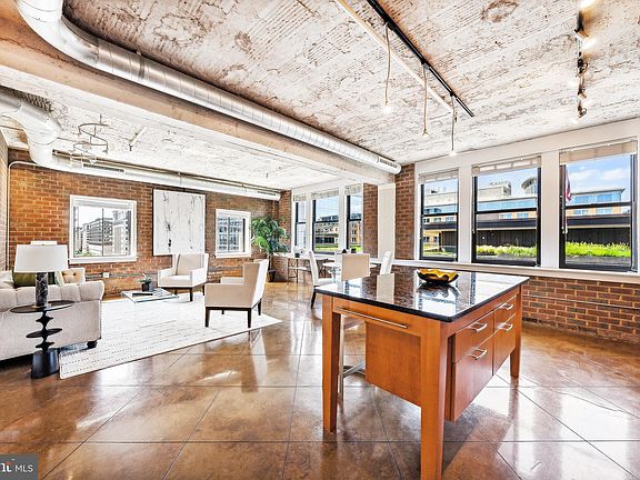 Welcome to your urban sanctuary in vibrant Penn Quarter! This one-of-a-kind corner unit offers the perfect blend of modern sophistication and industrial charm, a true rarity in the city. Step inside to discover the striking concrete floors and exposed brick walls, distinctive features that set this condo apart from most others in the city. This well designed one-bedroom, one-bath home features an open layout bathed in natural light, creating a spacious and inviting atmosphere. The gourmet kitchen is equipped with GE Profile appliances (including a gas range) and offers ample storage and countertop space. Making daily life a breeze, the unit is also equipped with in-unit laundry. The building itself offers a range of amenities, including a dedicated concierge service, secure 24/7 package room, secure bike storage, and eco-friendly composting facilities. In the commercial space on the ground floor there is a café and chic cocktail bar which offers residents 10% off and makes the perfect spot for leisurely mornings or convivial evenings. Location is paramount, and this condo is ideally situated less than a block from the Gallery Place metro station and less than two from the Metro Center station, providing unparalleled access to all that D.C. has to offer. But with so much within walking distance, you’ll likely rarely be taking the metro- whether you’re headed to City Center for shopping and dinner, or to the Capital One Arena for a concert, you'll find everything within easy reach. Experience the pinnacle of urban living with refined industrial style in the heart of the city.