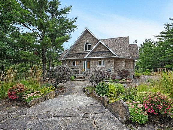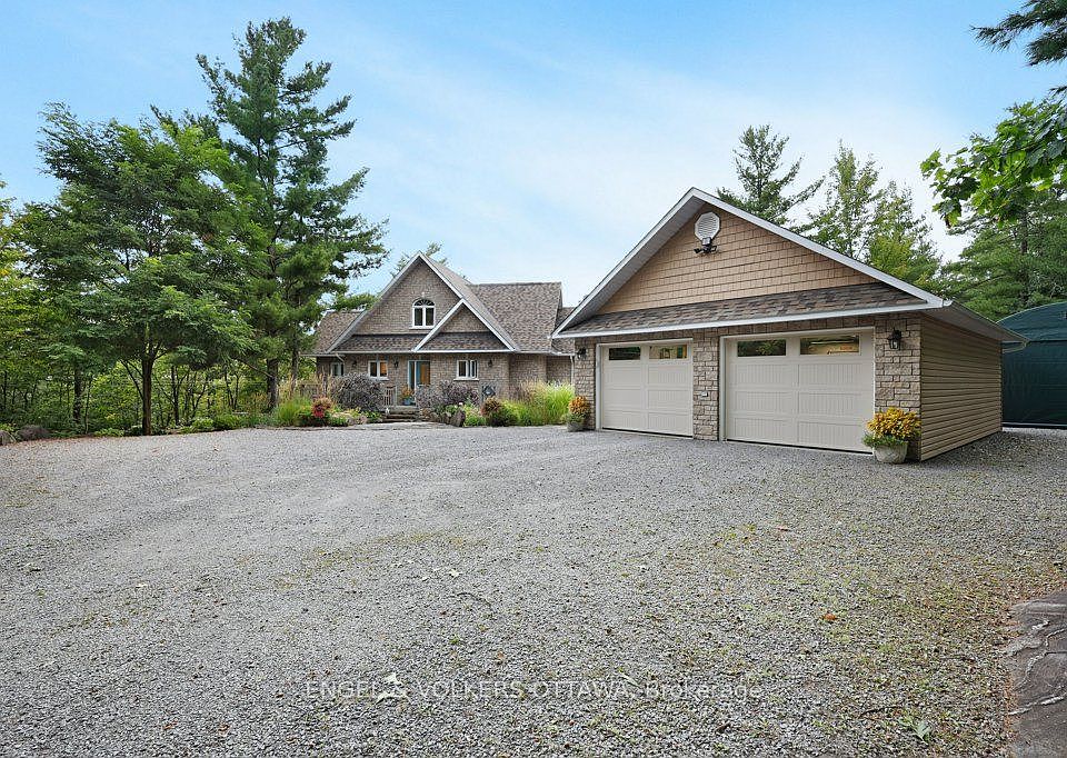 Nestled just a short drive north of Renfrew, 916 Humphries Road is a charming one-and-a-half-story home on a peaceful road, steps from the Ottawa River. Surrounded by trees and meticulously landscaped gardens, this property provides the perfect blend of privacy and natural beauty yet only 10 minutes drive to amenities and 10 minutes from the Algonquin Trail - perfect for hiking, biking, 4-wheeling and more. With four bedrooms, four bathrooms, and a double-car garage, this home combines comfort and functionality. Enjoy the stunning views from one of two wrap-around decks or take in the tranquility of the outdoors from the walkout lower level, complete with a hot tub. Inside, the heart of the home is the spacious kitchen, featuring rich natural wood cabinetry, granite countertops, stainless appliances, and a large island that serves as both a gathering place and a functional space for meal prep. The open kitchen, dining and living areas are accented by beautiful views of the Ottawa River and warmed by a propane floor-to-ceiling stone fireplace. You can enjoy your morning coffee in the cozy sunroom and your favourite music through the indoor/outdoor Nuvo sound system. The primary bedroom is located on the main floor, offering a walk-in closet and a 4-pieceensuite with a walk-in shower. Upstairs, two bright and airy bedrooms share a main bathroom. The fully finished lower level provides versatile living space, with a family room including gas fireplace, home gym, bedroom/office, 3 piece bath and workshop perfect for a variety of uses. A Generac standby generator powers the whole home in the event of power outages. A water softener and air exchanger add to the functionality of the home. A public boat launch to the Ottawa River is just 5 minutes away. This is a rare opportunity to own a countryside retreat with modern comforts and exceptional outdoor living. Don't miss your chance to make this home your own!