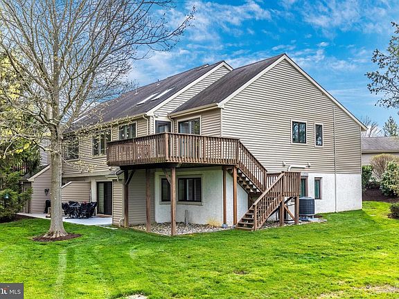 A rare find! Upper one floor quad end unit in Jefferson Village in Hersheys Mill with easy one step entry. Sunlight floods the whole unit with remarkable views of a pond and open space. The expansive Living and adjacent Dining Room is flooded with sunlight from windows and skylights. Enjoy the deck with peaceful pond views and spectacular sunsets. This unit is adjacent to the walking trail and close to the main pool. The deck has steps to the common areas, for bird watching, dog walking or simply walking. The kitchen has lots of beautiful counters and tile work, with an eat at breakfast bar (chairs included). The cabinets compliment the counters perfectly. Huge master bedroom has two walk in closets and a large window seat with cedar storage for bedding or whatever you choose. The master bedroom has a good sized in suite bath with good natural light. A second full bath with tub is accessible from the second bedroom or hall. The second bedroom can be used as a den and has a sliding door to the deck. Lots of nice neighbors in the wonderful Hershey Mill community and Jefferson Village. For a fee you can join the golf club for golfing, or just join as a social member for dining and friendly happy hours. Something for everyone from tennis, paddle tennis, bocce, shuffle board, library, not to mention all sorts of clubs to join. Information on them is in the unit.