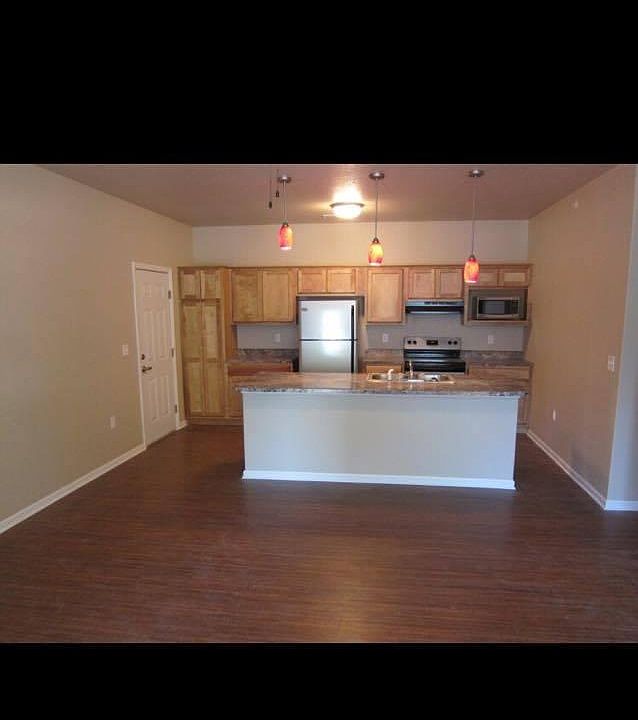 One Room for rent in a large 2BR apartment on Kearney St! Only blocks away from Aggieville and KSU. The spacious room is in a large two bedroom apartment with one female and her cat. You would be leasing the room with the private bathroom. The room also has a built in desk, cabinets and two built in closets. It has plenty of storage. There is washer/dryer in the unit and the living room will be fully furnished. The kitchen has a dishwasher, garbage disposal, plenty of cabinet space and is full stocked with dishes/pots/pans etc. Tenant is responsible for wifi and electric (split with the other roommate). All other utilities are covered. The pictures I've included below are not of this specific unit, but our apartment looks exactly the same, except with darker cabinets. Requesting a female tenant with no pets who is also okay with one cat.