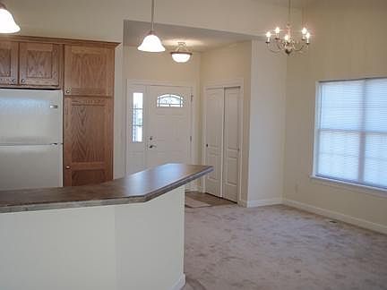 Ranch style condo with a 3 car garage, built in 2009. 3 bedrooms, 3 baths and a finished basement. Living room with vaulted ceilings and a gas fireplace. Laundry room with hook ups for washer and electric dryer(w/d not included). Master bedroom and guest bedroom on the main level. The finished basement has a rec room, bedroom and a full bath. Includes kitchen appliances. Grass service included. Small dog 40lbs (no vicious breeds)$200. pet fee, and $30/mo. Cat ok $100. pet fee and $20/mo pet rent Tenant is responsible for gas, elect, sewer, water, snow removal from driveway.