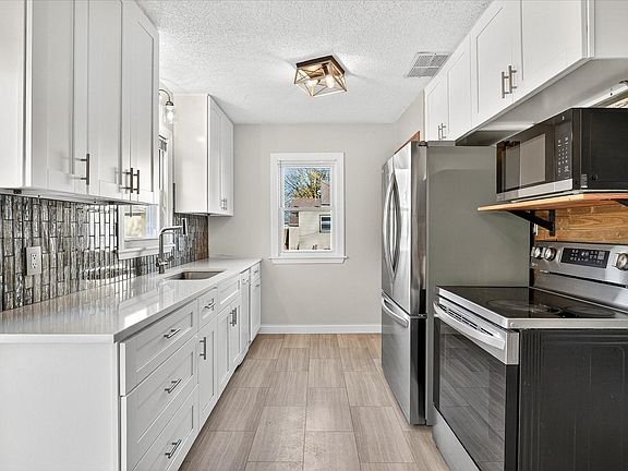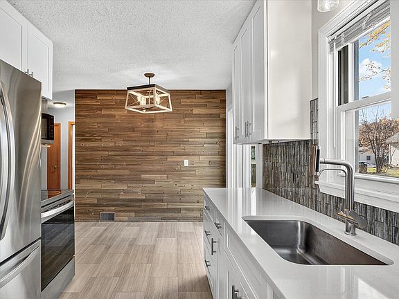 Welcome to this beautifully updated 3-bedroom home featuring a bright and inviting interior. The modern kitchen shines with quartz countertops, soft-close cabinetry, stylish lighting, newer appliances, and updated flooring. A sliding patio door off the dining area opens to a freshly stained deck, an inviting space to relax or entertain.
