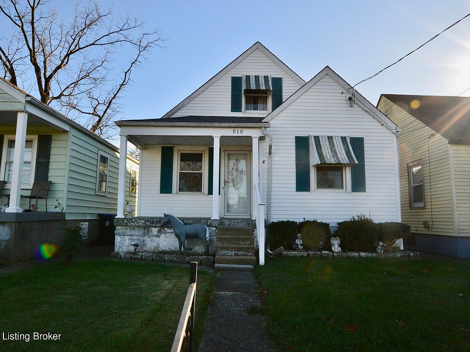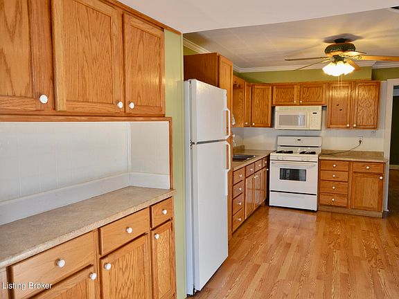 New listing! Welcome to this charming home that has been in the same family for 74 years across from Churchill Downs. Living room consists of a ceiling fan and laminate flooring. Spacious eat in kitchen that has plenty of oak cabinets and countertops. Pantry. There is an extra workstation as well. Refrigerator, gas stove and microwave to remain. Ceiling fan and laminate flooring. The washer and dryer are included in the kitchen area and are to remain. Atrium back doors with mini blinds in between the glass. This home has two bedrooms that consists of ceiling fans and laminate flooring. One of the bedrooms has built in shelves and cubby holes for storage. Full bathroom in the hallway. There is a large room on the second floor that was originally used as a bedroom that has a large walk-in closet and attic storage with endless possibilities. There are no heat vents and is considered non-conforming square footage. Unfinished basement. There are additional washer and dryer hookups in the basement as well. Covered back porch, shed and a two-car carport with a concrete pad for off street parking in the back yard. Make your appointment to see this home today!