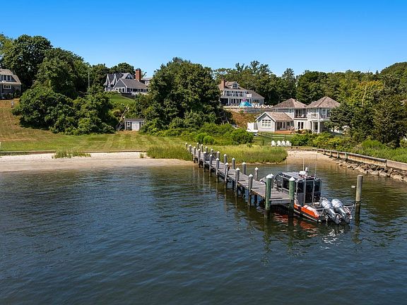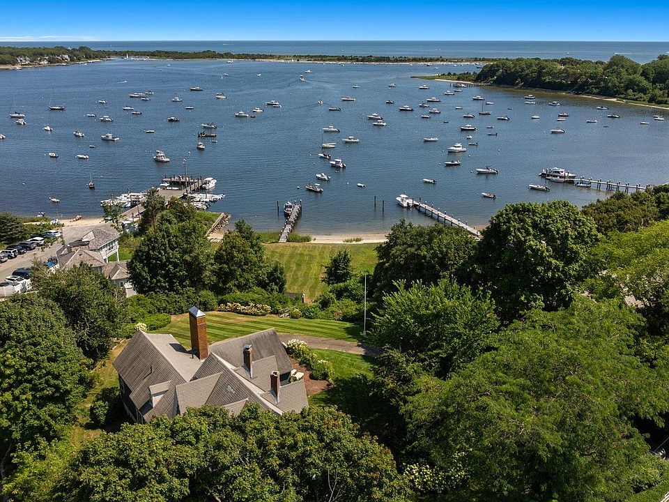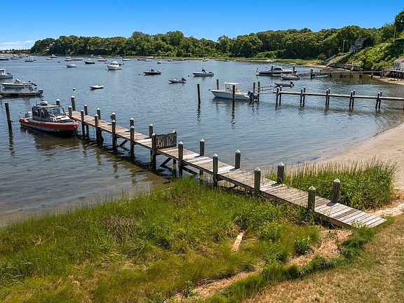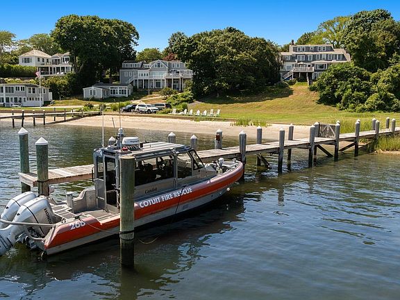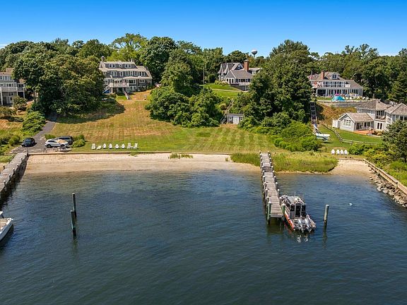 Set in the heart of Cotuit Village, this iconic waterfront home features a significant deep-water dock and sandy beach on Cotuit Bay. An exceptional opportunity for boating enthusiasts, a recorded dock and dredging license allows for dredging to a depth of five feet below mean low water. The five-bedroom residence is ideally sited on a bluff with commanding views of Cotuit Bay and Nantucket Sound beyond, surrounded by vibrant gardens and manicured lawns. Inside, thoughtful details include vaulted ceilings, exposed beams, and expansive windows that frame the harbor from nearly every angle. An open layout connects living and dining spaces to a spacious deck and brick terrace, perfect for outdoor living and entertaining against a breathtaking backdrop. Located steps from all that Cotuit Village has to offer, this extraordinary property blends timeless charm with an unsurpassed lifestyle, creating the quintessential seaside retreat.