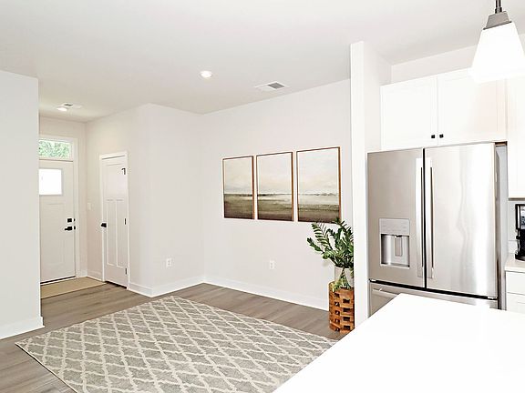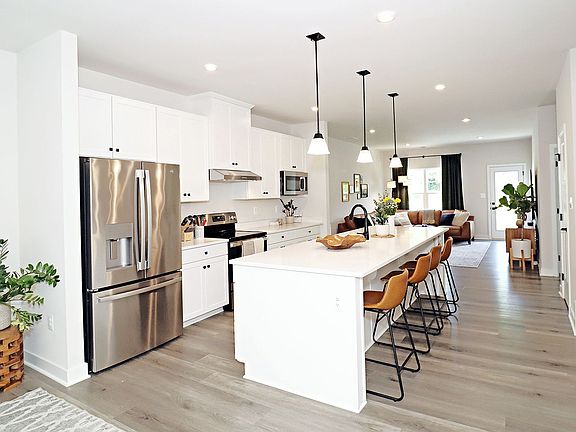 Step inside the 1,982 sqft attached home and be greeted by luxury vinyl plank flooring, high ceilings, and recessed lighting. An open main-level layout includes a well-appointed kitchen with granite countertops, stainless steel appliances, and a large island that flows seamlessly to a dining area, and a light-filled living room. A spacious primary suite features a walk-in closet and en-suite bath. A half bath, as well as a walk-in laundry room with a front-load washer and dryer completes this main level. Upstairs you will find two additional bedrooms, a full bath, and a home office. Enjoy relaxing on the rear patio with an open grassy yard, and the convenience of an attached 2-car garage plus driveway parking.