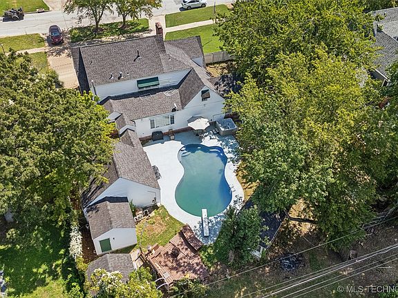 The American Dream! This charming property has EVERYTHING! STAYCATION backyard with inground saltwater pool, pond, screened in cabana, tiki/flex building, a workshop area with bathroom! Inside features hardwood floors, built ins, 2 living areas PLUS game room AND flex room! Kitchen is updated with refinished cabinets & quartz countertops, 2 ovens, pantry & garden window! Formal dining, Large master bedroom is one of two bedrooms on the main level! It is very private with a sitting room/office, spa like ensuite bathroom, an enormous walk in closet, and private porch! Lots of storage! Freshly painted! Newer carpeting! LOCATION!!! Approximately 15 minutes to downtown Tulsa and to Keystone Lake Park!