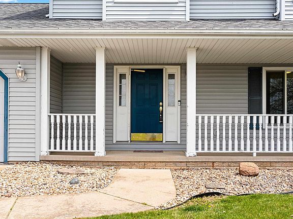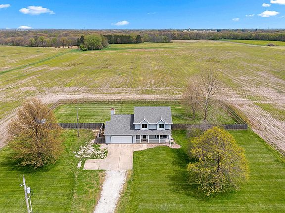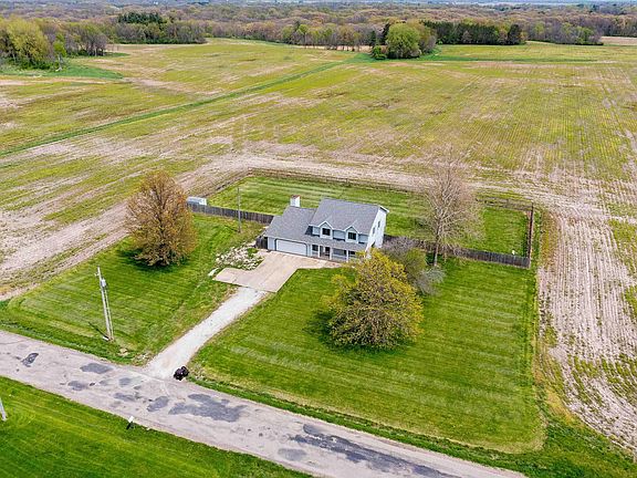 Experience serene country living in this stunning updated 4 bedroom, 2.5 bath home nestled on over an acre of private land. This property features a spacious fenced yard, a freshly painted 25x11 deck and useful storage shed. A welcoming covered front porch leads you into a refreshed interior boasting new authentic hardwood floors, Andersen windows, and updated lighting fixtures. The open floor plan includes a striking family room with a vaulted ceiling and fireplace, flowing into a bright kitchen equipped with an island breakfast bar and new sliding doors to the deck. Formal dining space and flex room off the kitchen offer endless possibilities. Convenient main floor laundry and a half bath add to the home's practical layout. Upstairs, fresh carpeting lines the large bedrooms and loft area that overlooks the family room. The primary suite impresses with a walk-in closet, new hardwood flooring and a revitalized bathroom with new vinyl floor. An unfinished basement provides ample storage and a rough-in for an additional bathroom. New water heater, sump pump, security system and electrical panel. Located on the desirable east edge of town, this property offers a perfect blend of tranquility and convenience. Don't miss your chance to make this dream home yours!