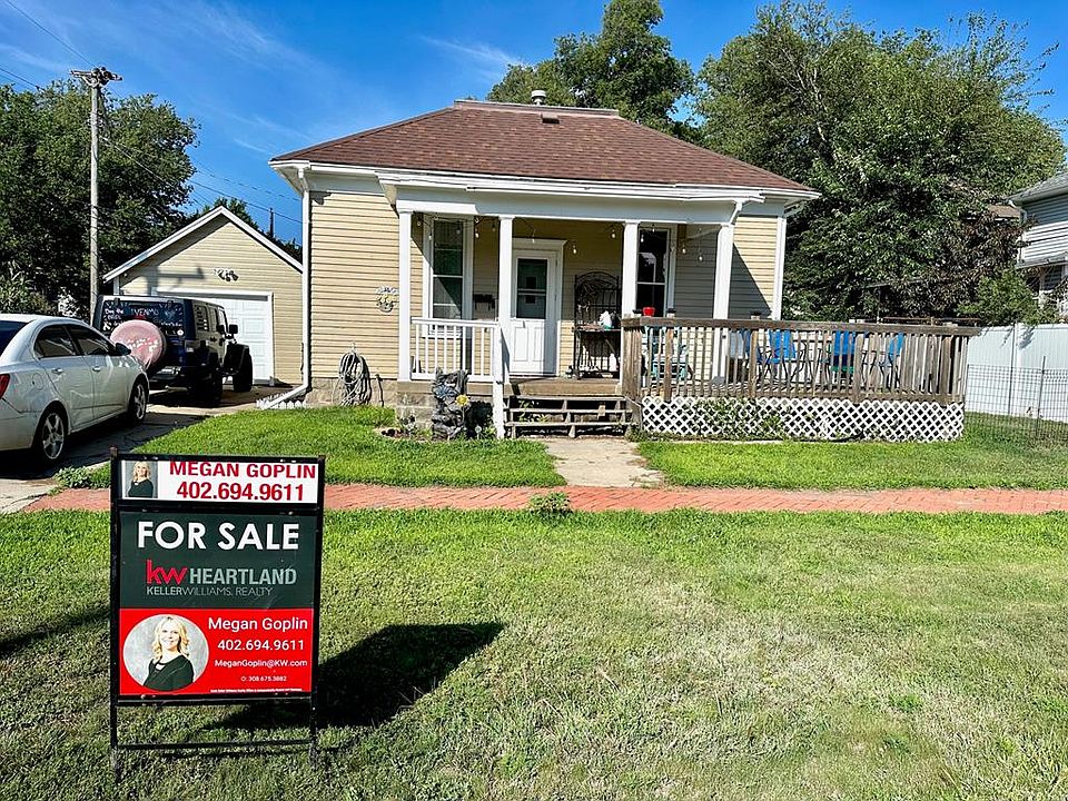 Adorable 2bd, 1ba home. New paint and trim in the living room. Large kitchen with an extra breakfast nook space. Main level laundry. Basement offers a lot of storage space. New privacy vinyl fence placed in 2022. Side yard w/ low maintenance & a nice covered porch. One car detached garage w/ an awning connecting to the home. Would be a great first home or even a fantastic rental. Don't miss out!
