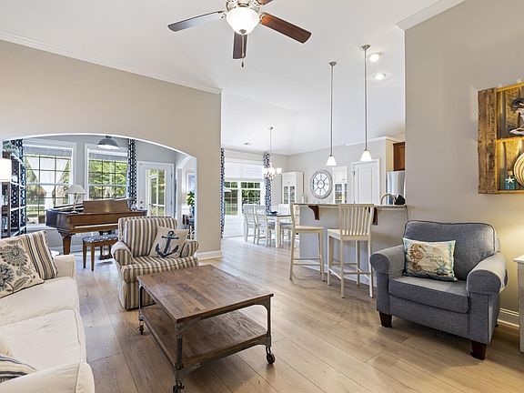 Single level house with in ground pool located in popular Harbor Lights Subdivision, east of Hwy 17, natural gas community with sidewalks and street lights, house is on one of the more private lots and is beautifully landscaped that is a bird and butterfly haven with expansive flower beds, fenced yard with dog run, recently re-sodded yard, screened porch overlooking in ground heated pool, the Bluffton plan is open with oversized MBR and huge walk-in closet, LVT flooring installed throughout house, whole house dehumidifier, tankless gas water heater, granite countertops, stainless appliances, move in ready