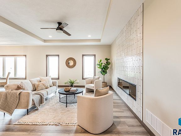 Another Quality Home by Joshua Inc. atop of North Sioux Blvd, in Brandon. Come see the Views. This 5 Bedroom 3 Bath Walk-Out lower level Home with a 3 Stall Heated Garage and additional working/hobby space. The kitchen is open with a spacious Island, Large Walk-In Pantry, Tile Backsplash, Quartz Counter tops. Dining area you can spread out and entertain the entire family. Slider to a Covered Deck. Beautiful Tile surrounded Electric Fireplace. Luxury Vinyl floors. Primary Bedroom bathroom offers a gorgeous tiled shower, heated floor. Front facing 2nd Bedroom with closet. Laundry room off back entryway. The u-shaped stairway to lower level walk-out family room. 3 additional bedrooms and 3/4 Bathroom. Finished storage/hobby/study room. 3 Stall garage with working area, floor drain, Heated. Come see the view from atop of Brandon.