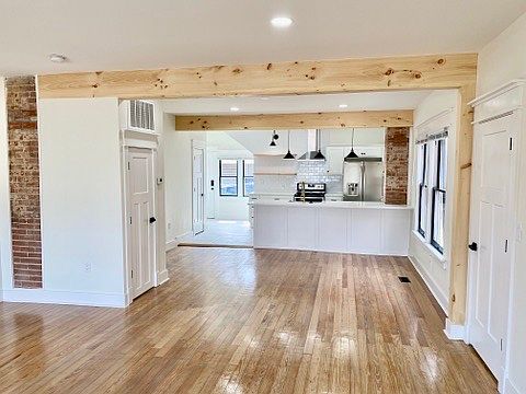 This thoughtfully updated downstairs unit blends original charm with modern systems and smart design. Located just steps from Perle Park with a playground, sand volleyball, and green space it's also near Wilson Elementary, great restaurants, nightlife, and running-friendly streets. Inside, the open living, dining, and kitchen area features exposed wood beams, original brickwork, and plenty of natural light. The kitchen includes stainless appliances, quartz counters, shaker cabinets, floating shelves, and bar seating. There's a half bath and a separate laundry area off the back. Both bedrooms have closets and share a Jack-and-Jill bathroom with classic tilework. One bedroom is oversized, with a cozy bed nook. A large bonus closet off the living space offers excellent storage, and additional locked storage is available out back. The fenced backyard is a good size, with a separate area ideal for a garden. Keyless entry at the rear allows for a custom code. All systems plumbing, electric, HVAC are brand new. The ceiling is insulated for noise reduction, and recessed lighting has been added throughout, including in both bedrooms. It's essentially a new home wrapped in the character of a historic one. 12-month lease. Deposit fully refundable pending post-lease inspection. Note that I pay water/trasher/sewer bill since it's a shared meter. Thus I charge the tenant an additional $42.50 each month on top of the rent.