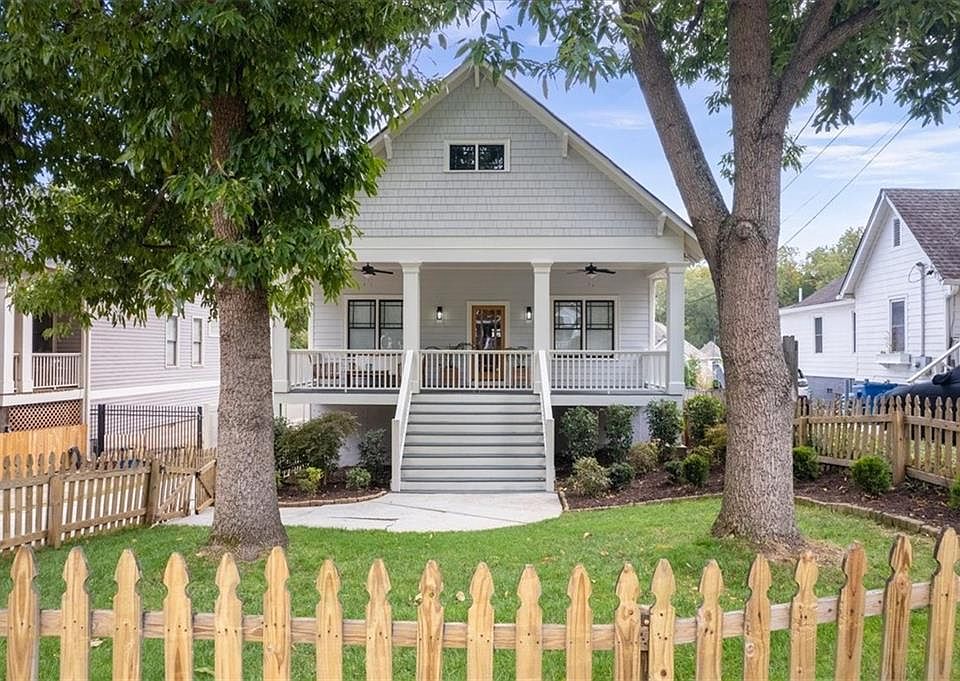 East Atlanta sparks suburban feels with in-town living overflowing with culture, diversity, great food and outdoor scene. Known as one of the best places to live in Atlanta, this Craftsman style home is a perfect place for space in the city. Become enamored as you walk through this winsome, truly move-in ready home with immense living space and plenty of parking. A large front porch welcomes you in as you get greeted by bright interiors, hardwood floors through out, and a well-appointed living room boasting coffered ceilings and cozy gas fireplace with mantle. Gather together, just in time for the holidays, in formal dining and eat-in kitchen encompassing white cabinetry, stainless steel appliances, white back splash, and quartz counters. Enjoy fresh air on sizable deck accessed by French doors. 5 spacious bedrooms awaits you between the main and upper floor with primary suite on main. Upgraded primary bath entails a double vanity and separate, tiled tub and shower. Upper floor room can double as a large family/living room/bonus room. A 4-Car Garage in the city is a RARITY. Drive under garage currently fits 4 cars or can be finished space for a partial basement. New interior and exterior paint. Located in sought after school district. Close proximity to East Atlanta Village, Little Five Points, Beltline. Conveniently located near parks, public transportation, many shops and restaurants.