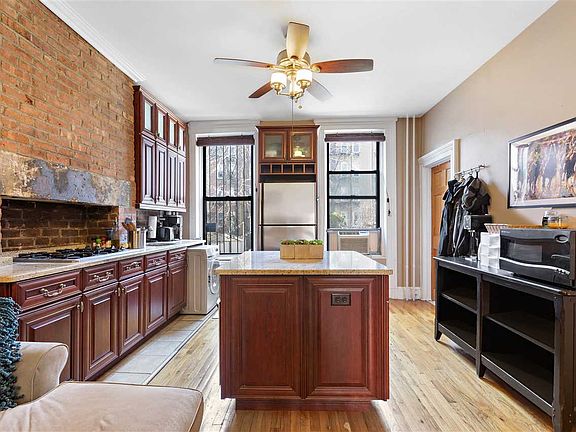 Beautifully updated parlor level home with classic details and modern upgrades. Tastefully refinished kitchen with large granite island and counters, stainless appliances and cherry cabinets. Open living area perfect for entertaining. Large bedroom, with 2 large windows and ceiling fan. Lots of light flood this unit from the over sized windows. Quintessential Hoboken features include hardwood flooring, crown moldings, and exposed brick throughout. In home all in one washer/dryer. Fabulous location close to restaurants, shopping and conveniences complete this perfect home. Rental parking available around block.