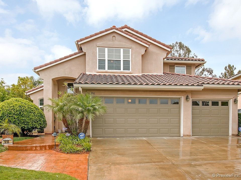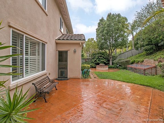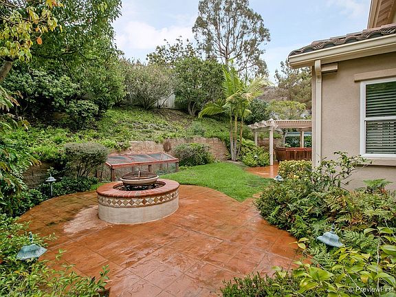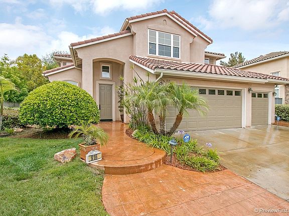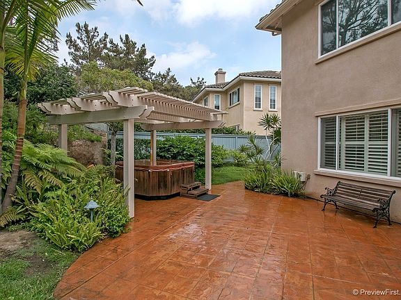 This home has 5 bedrooms and 3 bathrooms located in Aviara on a cul-de-sac. It has beautiful upgrades include kitchen maple cabinets with granite countertops a large family room with a ceiling fan and fireplace. 1 bedroom is downstairs. The master bathroom is upgraded with gorgeous marble. The home also contains plantation shutters A/C ceiling fans and a 3 car garage. The backyard has pergola spa stamped concrete lush landscaping! Only 1 street away from beautiful Batiquitos lagoon!