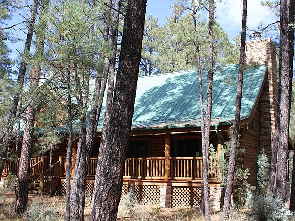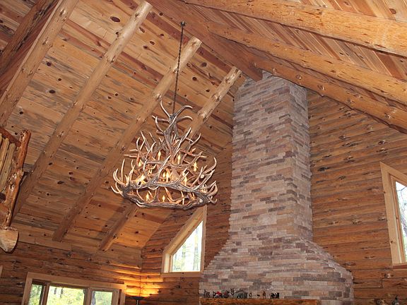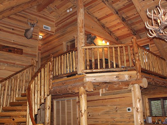 Amazing custom log home and 2-car garage on 1.25 acre horse property with tall pines. Being sold furnished, all purchased at Cabin Fever. A great buy with handcrafted features including: vaulted T&G & log ceilings, curved log staircase to the loft, a huge stack stone fireplace, wood windows, central heat and A/C, a metal roof and front and rear covered porches. Kitchen features SS appliances and large pantry. Master is spacious with its own pellet stove. Master bath has a corner jacuzzi tub and tile dual-head shower. The other two bedrooms each have their own pellet heater. You have to see this incredible property + 588sf garage.