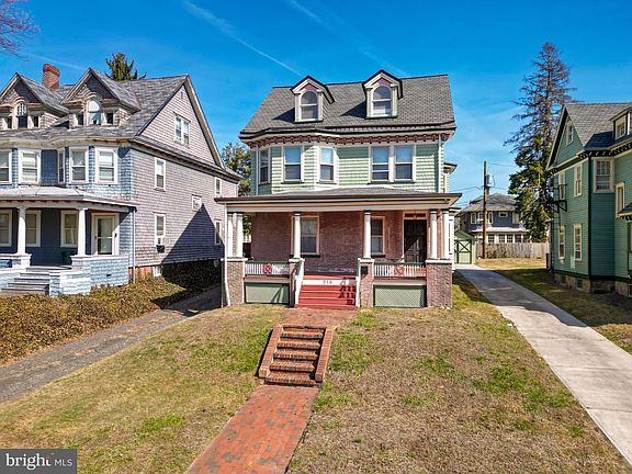 Welcome to this restored, vintage Victorian home located in the heart of the Historic Berkeley Square district. The home boasts spectacular views of the Delaware River from the front veranda and other amazing details such as high ceilings, natural chestnut moldings, hardwood floors and the craftsmanship of yesteryear. The first floor features an open floor plan; a spacious living room with brick wood-burning fireplace, hardwood floors throughout and bay-type windows. The formal dining room also has bay-type windows and a chandelier. The large eat-in kitchen has parquet wood flooring, and new dishwasher and electric stove. The first floor is rounded out with a full ceramic-tiled bathroom with quarry tiled floor. The bathroom has windows which allow for lots of sunlight. It also features separate heating, heat lamp with exhaust fan and pedestal sink. The second floor has 4 spacious bedrooms, all with hardwood floors, chestnut moldings, and serviced by a full ceramic-tiled bath with windows that again, allow lots of sunlight. The third floor offers additional living space with two large finished rooms, great for your craft work or for a home office. The rooms also boast great views of the Delaware River and are on a separate zone for heating. In addition, there is a large attic storage area. The unfinished basement houses the heating, sewage and hot water systems. Anderson windows are located in the basement only. The basement also has space for a workshop and laundry (the wash & dryer are less than 5 years old). The home has a concrete driveway with parking for at least 6 cars . New cordless window blinds throughout are included. The roof is 6 years old and comes with a transferable warranty. This home is conveniently located within minutes of I-295, I-195 and I-95 and rail transportation - Amtrak, NJ Transit, Septa and River Line. Also, easy access to Mercer County Airport. This home is a must see, schedule your appointment today.