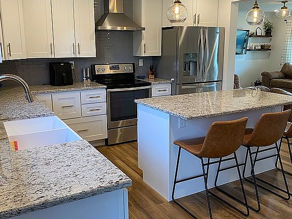This home has been recently renovated inside and out and has 3bedrooms with 2 full bathrooms. There is a 1 car attached garage with a car port and a full, unfinished basement. The roof, windows and siding were replaced in 2013. Furnace was replaced in 2014 and a water softener and an on demand water heater were installed in 2014. We had a new air conditioner put in in the summer of 2019. The renovations done in 2020 on the inside include an all new kitchen with new cabinets and granite countertops and the hall bathroom with granite countertops and subway tile bathtub/shower. Flooring is new throughout. The master bathroom has a huge walk-in shower stall and heated floors! Outside there is a nice patio with two pergolas and a built in grill (grill will stay for extra $$). Shed in backyard will stay with the house. This house is a block from the public grade school and 2 blocks from the public high school.