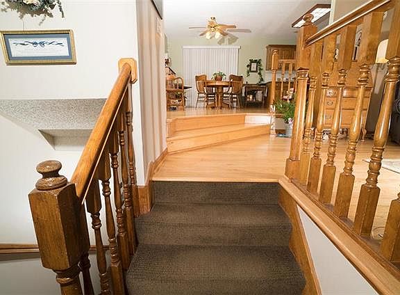 You won't believe the "Grand Entrance" to this home, as this is not your typical split entry home. Go up the steps & to the right is your large sunken Great room or go up two two more steps & be in the dining area. These three rooms have lovely hardwoods that extend down the hall. Very nice open floor plan. Kitchen is decked out with stainless appliances, an island and large pantry with all the shelving. There are three bedrooms and two full baths on the main level w/ the forth conforming bedroom in the basement.